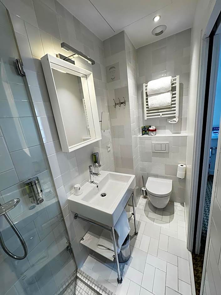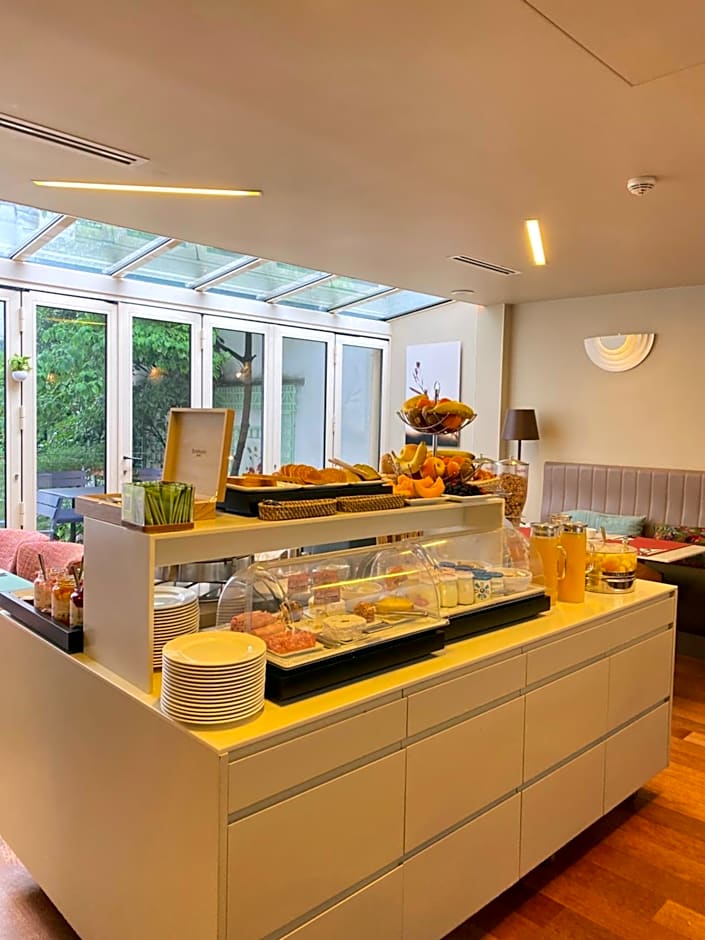 This family-run hotel offers comfortable, non-smoking rooms designed with contemporary elegance and a discreet ambiance. Some rooms overlook a peaceful patio, while others face a quiet street, all thoughtfully arranged for a relaxing stay. Each room has free Wi-Fi, a flat-screen TV, air conditioning, a safe, a minibar, and a hairdryer.